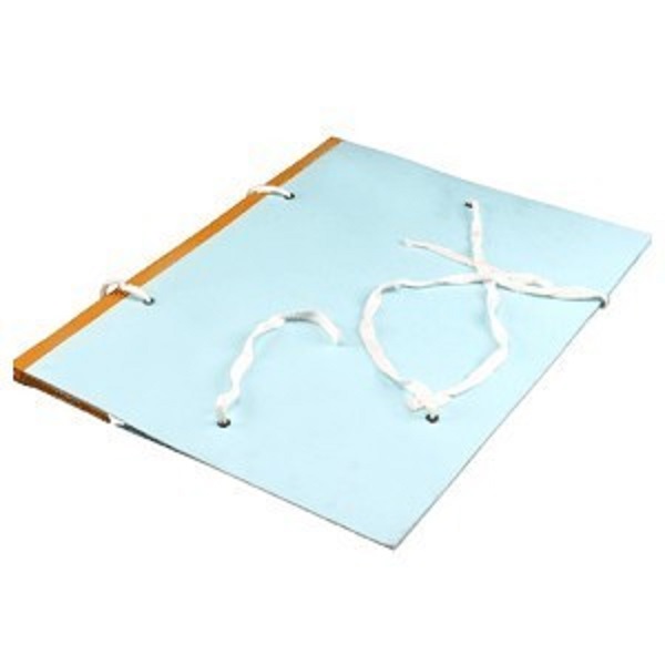 แฟ้มผูกสันหลุด ปกกระดาษแข็งหุ้มด้วยกระดาษแบงค์สีฟ้าอย่างดี สันหุ้มด้วยผ้าสีกากีชนิดหนา พร้อมเชือกผูก