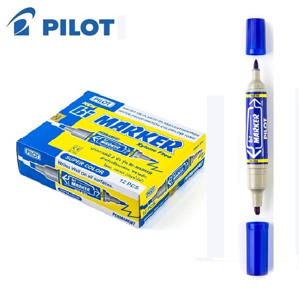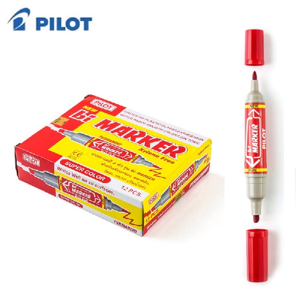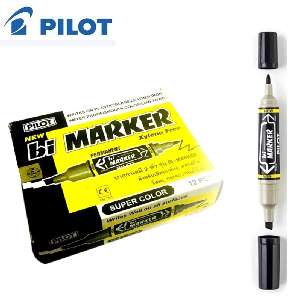 ปากกามาร์คเกอร์ชนิด 2 หัว สีน้ำหมึก : สีดำ , สีน้ำเงิน , สีแดง สะดวกด้วยหัวปากกา 2 รูปแบบในด้ามเดียว สามารถเขียนบนกระดาษ โลหะ พลาสติก ถุง และอื่นๆได้อย่างถาวร