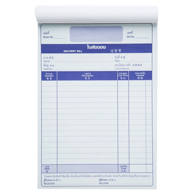 ปกกระดาษอ่อน เปิดง่าย ป้องกันกระดาษภายในสกปรก เข้าเล่มแบบสันกาว ยึดติดแน่น ไม่หลุดจากเล่ม ฉีกได้เรียบคม เนื้อในกระดาษเรียบเนียน มีคาร์บอนในตัว ให้สำเนาคมเข้ม ชัดเจน แบบฟอร์มเข้าใจง่าย ไม่ยุ่งยาก ข้อความกะทัดรัด ใช้งานสะดวก กระดาษสำเนาระบุ \"สำเนา\" ชัดเจน ง่ายต่อการคัดแยก