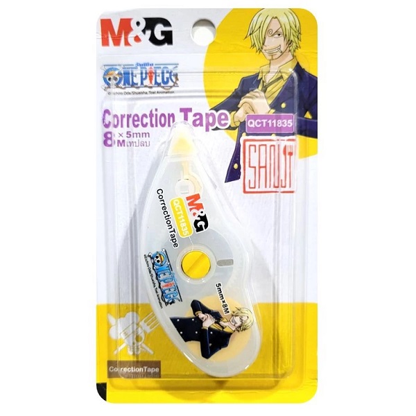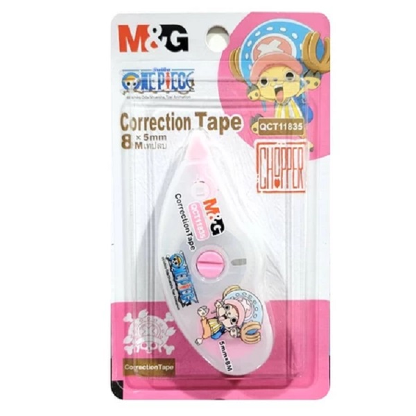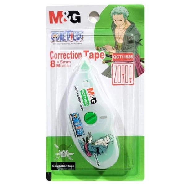 เทปลบคำผิด ตรา M&G ลายวันพีช ลิขสิทธิ์แท้ เทปกว้าง 5 มม. ยาว 8 เมตร มี 4 สี 4 ลาย ได้แก่ Luffy Chopper Sanji และ ZORO รุ่น QCT11835 เนื้อเทปคุณภาพดี จำนวน 1 อัน