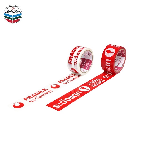 LOUIS TAPE เทประวังแตก 2 นิ้ว x 45 หลา พื้นขาว พิมพ์แดง