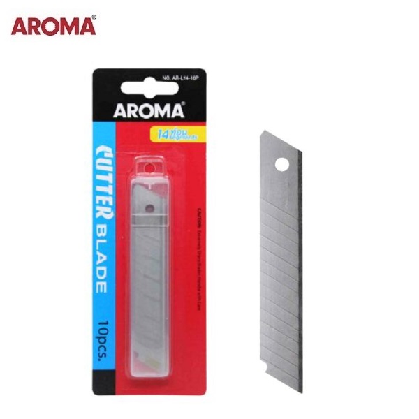 ใบมีดคัตเตอร์ขนาดใหญ่ ใบมีดผลิตจากสเตนเลสคุณภาพมาตรฐาน ด้วยกรรมวิธีผลิตจากประเทศเกาหลี ใบมีดหักได้ 14 ท่อน ใช้ได้คุ้มค่า แข็งแรง คมทน ใช้งานได้นานกว่า เคลือบด้วยสารพิเศษป้องกันสนิม บรรจุในหลอดพลาสติก แข็งแรง ปลอดภัย 10 ใบ/หลอด