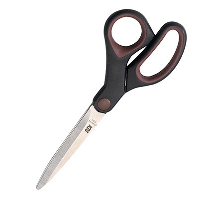 ใบมีดผลิตจากสเตนเลสคุณภาพดี คม ทนทาน แข็งแรง ด้ามจับถนัดมือ ด้ามจับทำจากพลาสติกอย่างดี ตัดได้แม่นยำ ใช้ตัดผ้า กระดาษหนา และงานประดิษฐ์ต่างๆ ขนาดความยาว 8 \" สีเขียว , สีน้ำตาล บรรจุ 1 ชิ้น/แผง