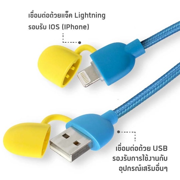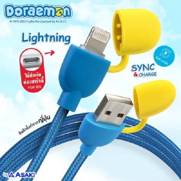 - มีโดราเอมอนกำลังจะกินทอฟฟี่สีเหลืองสดใส ใช้เป็นตัวรวบสาย สามารถให้สั้น/ยาวได้สะดวก รองรับการใช้งาน : iPhone/iPod/iPad