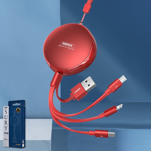 สายชาร์จ Remax สายชาร์จแบบ 3 in 1 Lightning(iphone),Micro usb,Type-C ออกแบบดีไซน์สวยงามจากผู้ผลิตอุปกรณ์ Smart Phone ชั้นนำของโลก Remax สินค้าจากฮ่องกง มาตรฐานส่งออกทั่วโลกสินค้ารับประกันพร้อมกล่องโดย รีแมค(ไทยแลนด์) Remax Thailand สายชาร์จ คุณภาพดีเพื่อเพิ่มความคงทน ทนทาน สายทองแดงภายในคุณภาพสูง เพื่อเพิ่มประสิทธิภาพในการชาร์จ