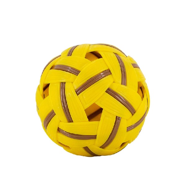 ผลิตจากพลาสติกใยสังเคราะห์ ผิวยางนุ่ม ช่วยลดแรงเสียดสี ควบคุมลูกง่าย ขนาดและน้ำหนักมาตรฐานได้รับการรับรองจาก สหพันธ์เซปักตะกร้อนานาชาติ ใช้สำหรับฝึกเล่นและออกกำลังกาย สำหรับแข่งขันกีฬาตะกร้อชาย