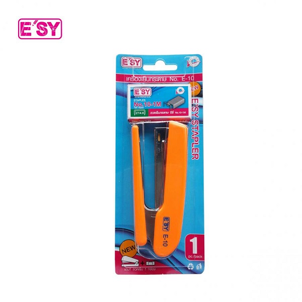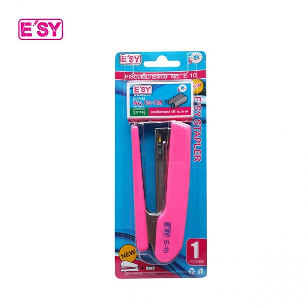 ตัวเครื่องผลิตจากเหล็กอย่างดีหุ้มพลาสติก ตัวเครื่องผลิตจากเหล็กอย่างดี หุ้มด้วยพลาสติกเพื่อลดแรงกระแทกในขณะที่ใช้งาน มีที่ถอนลวดอยู่ที่ปลายด้านหลังของเครื่องเย็บ ใส่ลวดเย็บได้ครั้งละ 2 แถว 100 เข็ม ใช้เย็บกระดาษทั่วไป